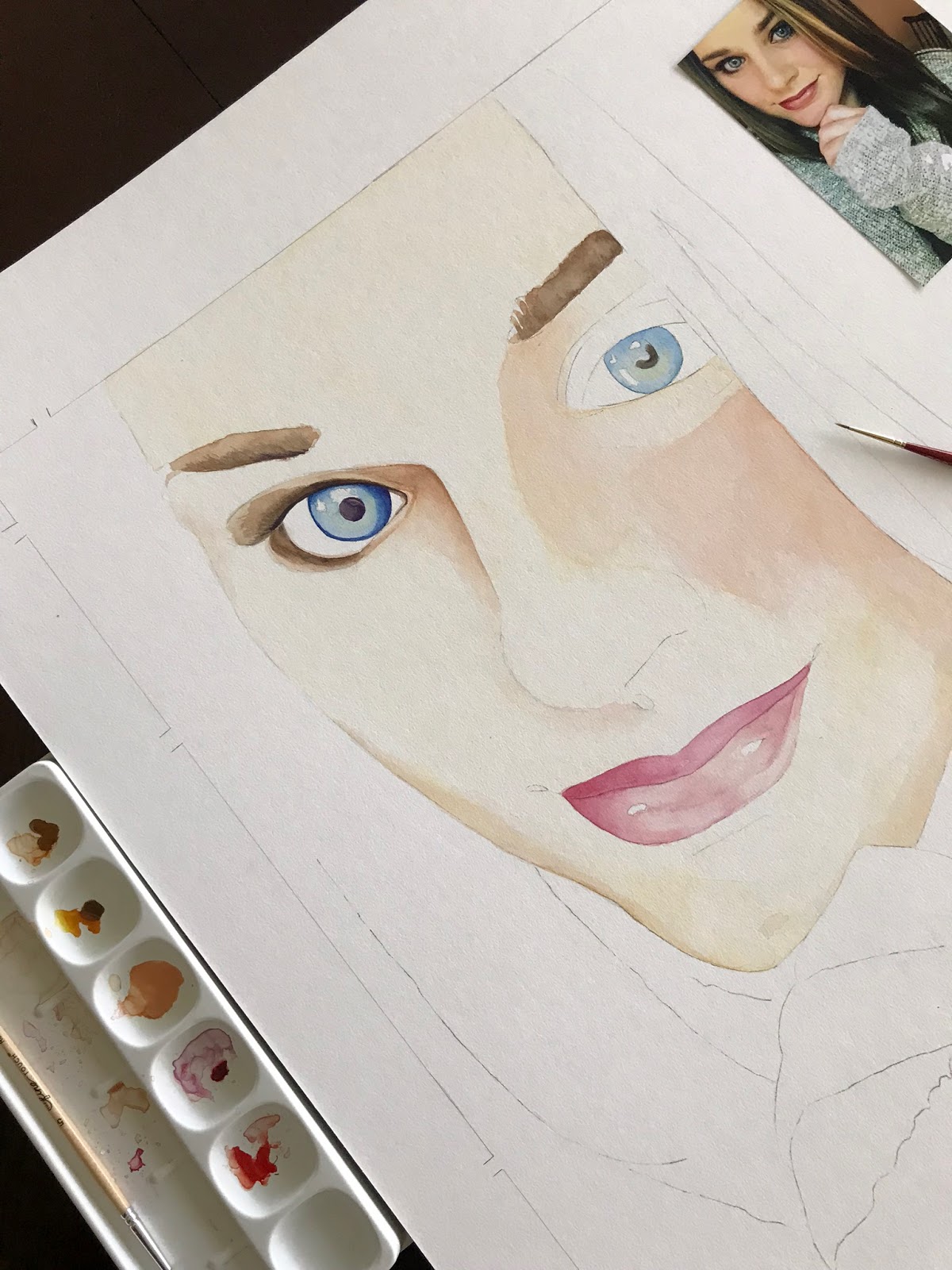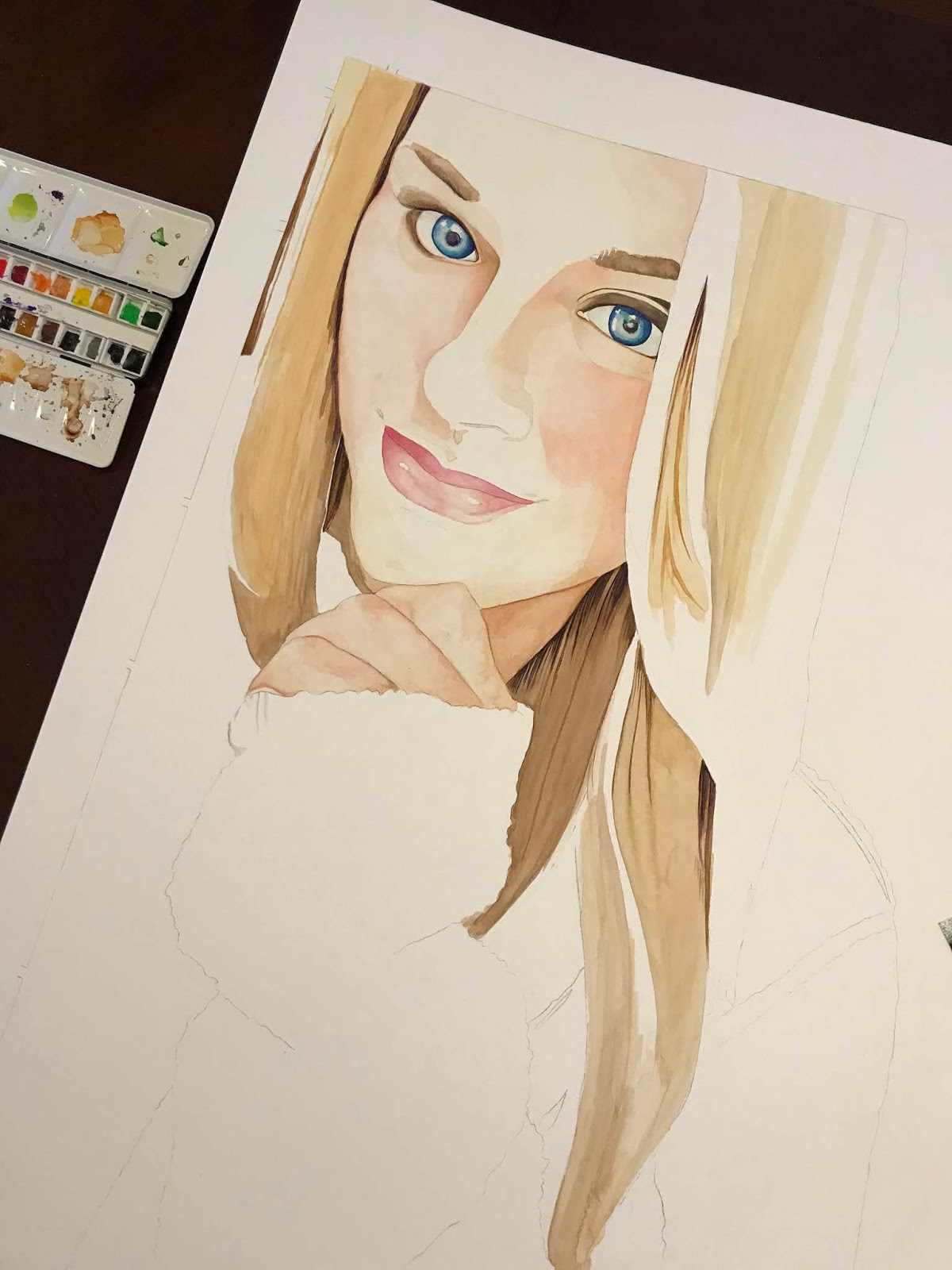 It always starts like this….get a light underdrawing in…then start with the watercolor washes.