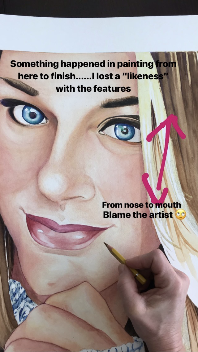 I messed up early…just an eighth of an inch. Too long from the right eye to the mouth. Ugh!